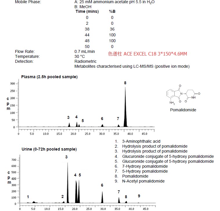案例一、14C 人血漿和尿液中的泊馬度胺和代謝物
