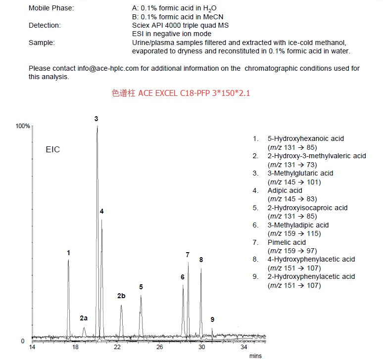 此為在C18末端鍵合PFP(五氟苯基)的特色固定相,可以在維持疏水性的同時增強極性化合物的保留,比如: