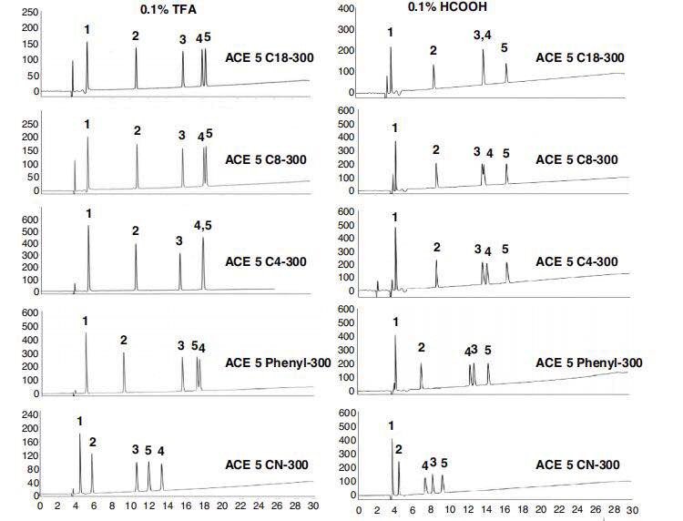 另外,對(duì)于大分子蛋白的反相用柱選擇還有C8-300, CN-300作為補(bǔ)充選擇用柱。