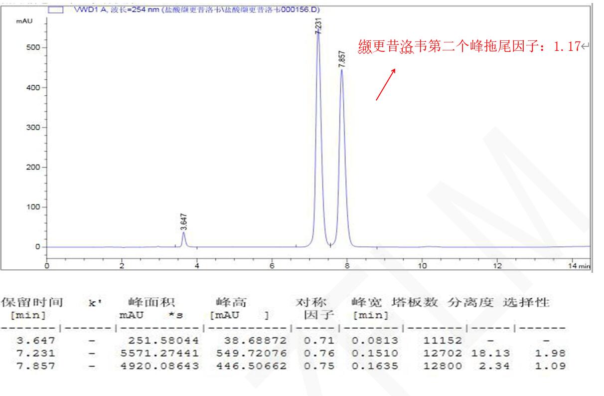菲羅門液相色譜柱對鹽酸纈更昔洛韋的分析色譜柱 1:Titank C18 3μm 150×4.6 mm(貨號(hào):FMF-5559-EONU)