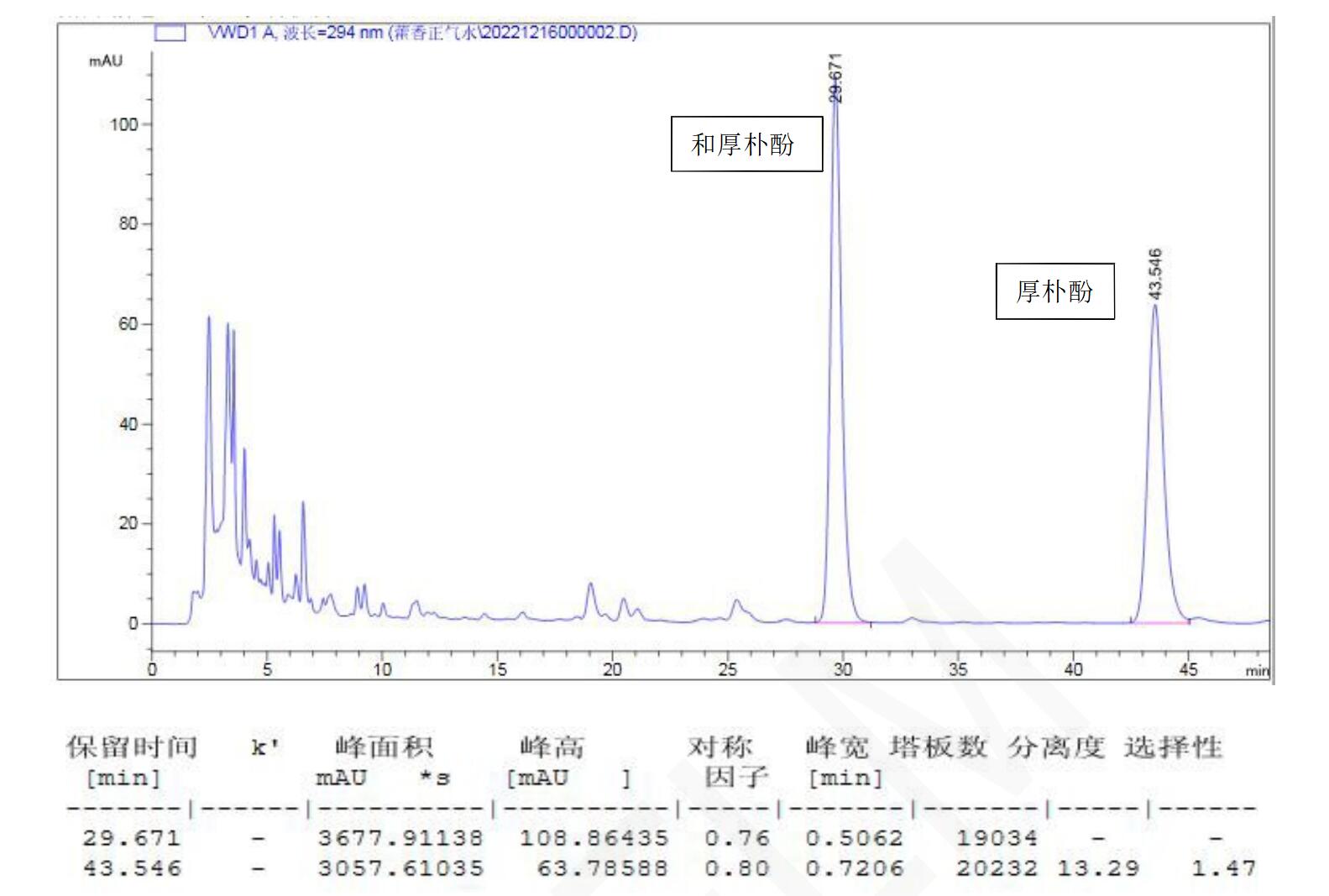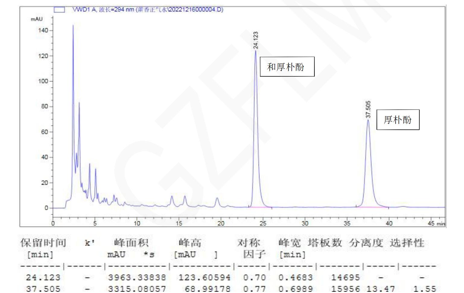 【厚樸測定】 理論塔板數(shù)按厚樸酚峰計(jì)算應(yīng)不低于 5000