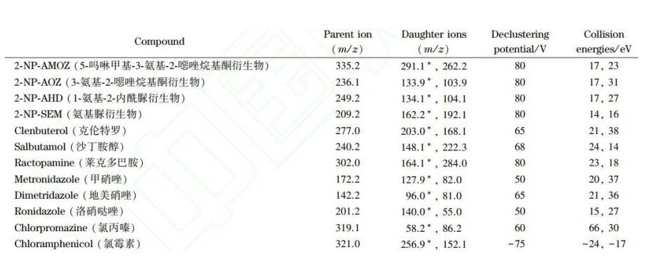App ID: FLM-T240003 Titank C18 串聯(lián)質(zhì)譜法 12 種獸殘分析 (甲硝唑氯霉素氯丙嗪克侖特羅沙丁胺醇等) 色譜柱:Titank C18 3u 100*2.1mm 貨號(hào):FMD-5559-BONU 流動(dòng)相:A 乙腈 B 0.1%甲酸 流速:0.3ml/min 進(jìn)樣體積:5 μL 柱溫:40℃