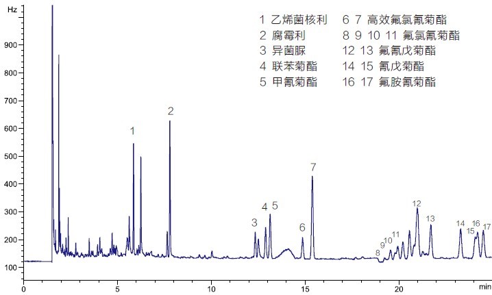 2、普洱中農(nóng)藥多殘留檢測(cè)色譜圖