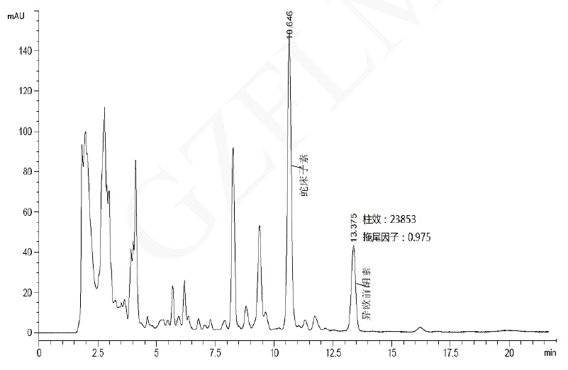 注:藥典規(guī)定理論板數(shù)按異歐前胡素峰計算應(yīng)不低于 20000.