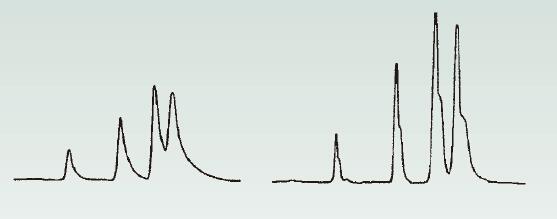 如果僅部分解析兩個(gè)峰形(兩個(gè)峰僅有部分分開(kāi)),則可能會(huì)認(rèn)為其是裂峰或雙峰。如圖4顯示的情形。