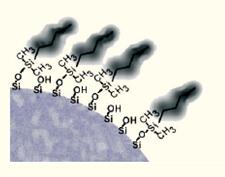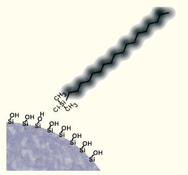 圖9. 通過利用有機氯硅烷將疏水性配體化學(xué)鍵合到硅膠表面形成了疏水界面。